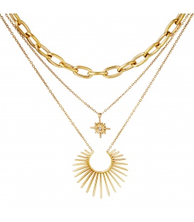Goudkleurige halsketting met paarse hanger Deze goudkleurige korte halsketting met een paarse hanger voegt een vleugje luxe toe aan elke outfit. De diepe paarse kleur van de hanger contrasteert prachtig met de warme goudtint van de ketting, waardoor een opvallende en stijlvolle combinatie ontstaat.