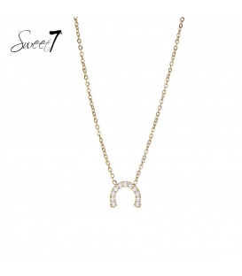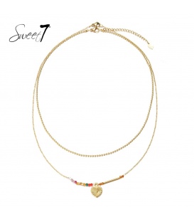Goudkleurige halsketting met een harten bedel en stras steentjes. De lengte van de halsketting is 39 cm De halsketting heeft een verlengkettinkje van 5 cm
