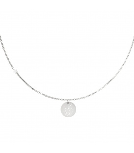 Zilverkleurige korte halsketting met verfijnde hanger. Deze zilverkleurige korte halsketting straalt tijdloze elegantie uit, met een prachtig detail als hanger dat elke outfit een subtiele, maar stijlvolle touch geeft. De delicate hanger vormt het middelpunt van deze sierlijke ketting, perfect om te dragen bij zowel casual als formele gelegenheden.