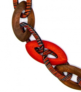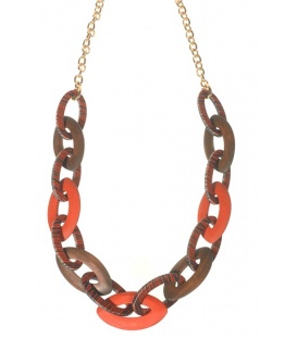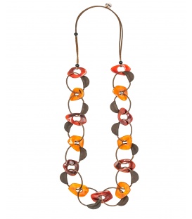 Oranje met roze halsketting met verschillende soorten hangers De lengte van de halsketting is circa 38 cm. De ketting heeft een verlengkettinkje van 5 cm