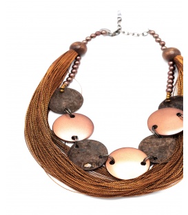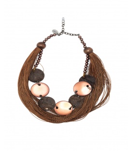 Stijlvolle zilverkleurige lange halsketting met bruine natuurstenen kralen. Deze stijlvolle zilverkleurige lange halsketting is een prachtig accessoire dat elke outfit verfraait. De ketting is versierd met bruine natuurstenen kralen, die warm en aards aandoen in contrast met het koele zilver. Deze combinatie zorgt voor een tijdloze en veelzijdige look.