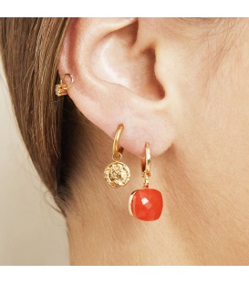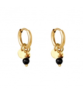 Goudkleurige oorringen met gekleurde dikke platte kralen. De lengte van deze oorbel is circa 4.20 cm. Voor oren met gaatjes. De oorbellen zijn nikkelvrij.