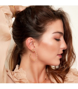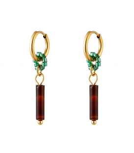 Goudkleurige hoops met groene kralen. De lengte van deze oorbel is 3.40 cm. Voor oren met gaatjes. De oorbellen zijn nikkelvrij.