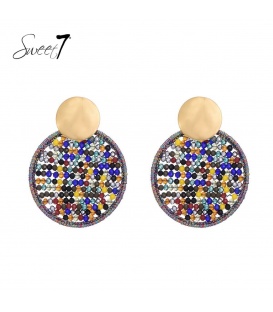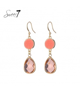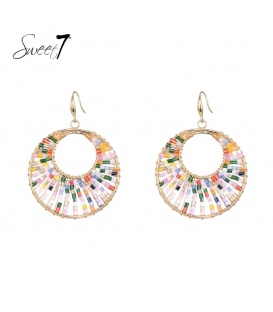 Goudkleurige oorhangers met gekleurde kralen. De lengte van deze oorbel is circa 5 a 6 cm. Voor oren met gaatjes. De oorbellen zijn nikkelvrij. De oorbellen zijn voorzien van stoppertjes.