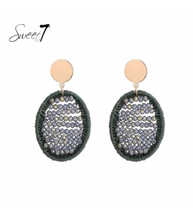 Mooie grijze oorclips met strengen en kralen De lengte van deze oorclip is 11 cm. Deze klem oorbellen zijn geschikt voor oren zonder gaatjes.