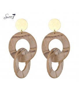 Goudkleurige oorhangers met 2 ringen en een goudkeurige oorstukje. De lengte van deze oorbel is circa 6 a 7 cm. Voor oren met gaatjes. De oorbellen zijn nikkelvrij. De oorbellen zijn voorzien van stoppertjes.