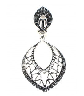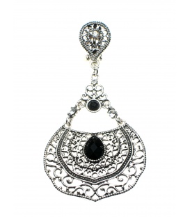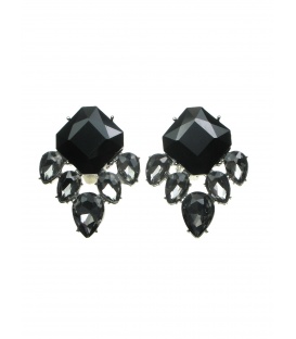 Ruitvormige oorclips met kleine zwarte kraaltje en heldere strass steentjes. De lengte van deze oorclip is 6 cm. Deze klem oorbellen zijn geschikt voor oren zonder gaatjes.