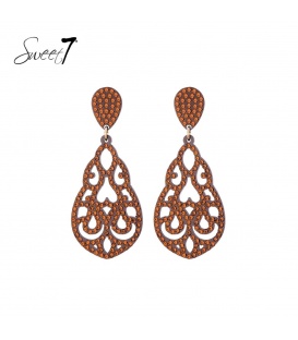 Bruine vierkante oorclips met bruine kralen en heldere witte strass steentjes. De lengte van deze oorclip is 1,8 cm. Deze klem oorbellen zijn geschikt voor oren zonder gaatjes.