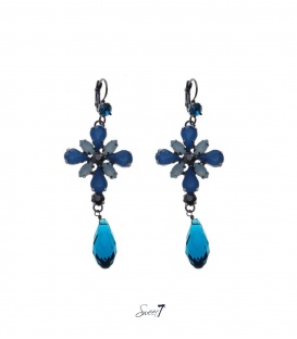 Ruitvormige oorclips met kleine blauwe kraaltjes en heldere strass steentjes. De lengte van deze oorclip is 6 cm. Deze klem oorbellen zijn geschikt voor oren zonder gaatjes.