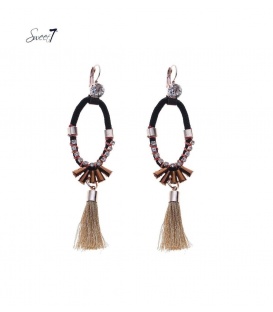 Zwarte oorclips met strass steentjes en metalen rondjes als hanger. De lengte van deze oorclip is 9 cm. Deze klem oorbellen zijn geschikt voor oren zonder gaatjes.