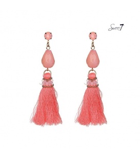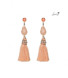 Roze oorhangers met kralen en een stoffen bloem. De lengte van deze oorbel is 9 cm. Voor oren met gaatjes. De oorbellen zijn nikkelvrij. De oorbellen zijn voorzien van stoppertjes.