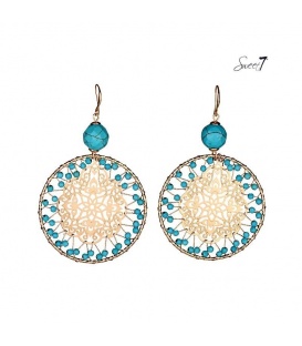 Goudkleurige oorhangers met blauwe kralen en schelpen. De lengte van deze oorbel is circa 7 a 8 cm. Voor oren met gaatjes. De oorbellen zijn nikkelvrij. De oorbellen zijn voorzien van stoppertjes.