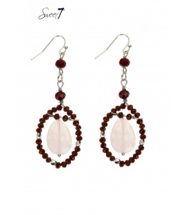 Donker rode kralen oorhangers met een witte ovale kraal in de hanger. De lengte van deze oorbel is 6.5 cm. Voor oren met gaatjes. De oorbellen zijn nikkelvrij. De oorbellen zijn voorzien van stoppertjes.