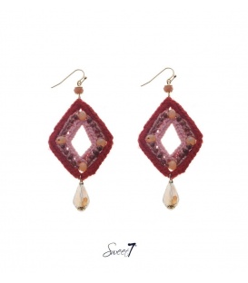 Terracotta gehaakte oorhangers in ruitvorm en kralen De lengte van deze oorbel is 9 cm. Voor oren met gaatjes. De oorbellen zijn nikkelvrij. De oorbellen zijn voorzien van stoppertjes.