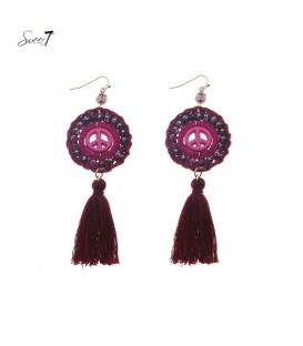 Rode oorhangers met koord roze peace teken, glas kralen en kwasten. De lengte van deze oorbel is circa 11 cm. Voor oren met gaatjes. De oorbellen zijn nikkelvrij. De oorbellen zijn voorzien van stoppertjes.