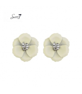 Beige glas kralen in de vorm van 2 bloemen en een heldere strass srand De lengte van deze oorbel is circa 6.50 cm. Voor oren met gaatjes. De oorbellen zijn nikkelvrij. De oorbellen zijn voorzien van stoppertjes.