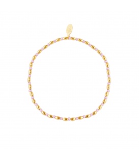 Zilverkleurige oorhangers met goudkleurig draad en roze kralen. De lengte van deze oorbel is circa 9 cm. Voor oren met gaatjes. De oorbellen zijn nikkelvrij. De oorbellen zijn voorzien van stoppertjes.