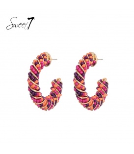 Mooie paarse oorhangers met 2 cirkels van glas kralen en een goudkleurig oor stukje De lengte van deze oorbel is circa 7 a 8 cm. Voor oren met gaatjes. De oorbellen zijn nikkelvrij. De oorbellen zijn voorzien van stoppertjes.