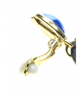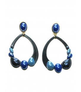 Zwarte oorclips met blauwe gekleurde inleg. De lengte van deze oorclip is circa 7.5 cm. Deze klem oorbellen zijn geschikt voor oren zonder gaatjes. De clip oorbellen zijn nikkelvrij. Voorzien van rubbertjes voor het comfortabel dragen van deze oorclips.