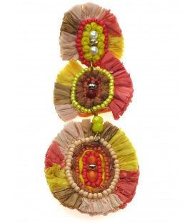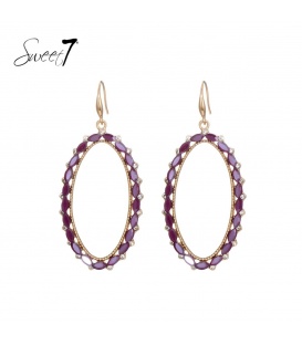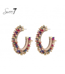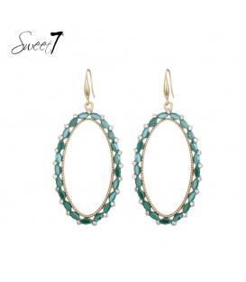 Gekleurde oorhangers met een goudkleurig element in het midden De lengte van deze oorbel is circa 5 a 6 cm. Voor oren met gaatjes. De oorbellen zijn nikkelvrij. De oorbellen zijn voorzien van stoppertjes.
