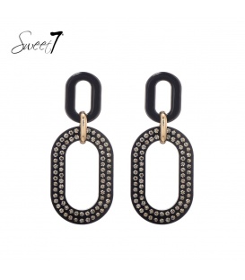 Gekleurde oorhangers met een goudkleurig element en een zwart oor stukje De lengte van deze oorbel is circa 4 a 5 cm. Voor oren met gaatjes. De oorbellen zijn nikkelvrij. De oorbellen zijn voorzien van stoppertjes.