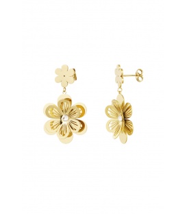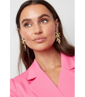 Stijlvolle Goudkleurige Bloemen Oorhangers. Deze goudkleurige bloemen oorhangers voegen een vleugje elegantie toe aan elke outfit. Het bloemdesign gecombineerd met een verfijnde gouden afwerking maakt deze oorbellen perfect voor zowel dagelijkse looks als speciale gelegenheden.