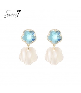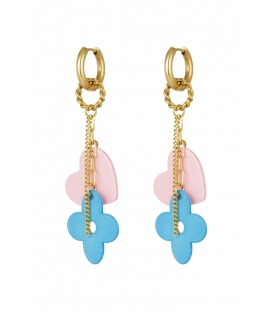 Stijlvolle oorbellen met blauwe bloemenaccenten. Deze oorbellen combineren de warme glans van goud met de serene schoonheid van blauwe bloemen, wat zorgt voor een unieke en stijlvolle look. Perfect voor zowel alledaagse outfits als speciale gelegenheden.