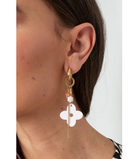Goudkleurige oorringen met kleurrijke bloemen details. Deze prachtige oorbellen combineren het tijdloze ontwerp van oorringen met een speelse en kleurrijke twist. De bloemen zorgen voor een vrolijke en unieke uitstraling, perfect voor elke modebewuste vrouw die houdt van een vleugje kleur in haar sieradencollectie.