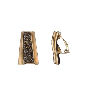 Goudkleurige oorclips met grijze inleg en klein bruin strass steentje. De lengte van deze oorclip is 2,5 cm. Deze klemoorbellen zijn geschikt voor oren zonder gaatjes. De clip oorbellen zijn nikkelvrij. Voorzien van rubbertjes voor het comfortabel dragen van deze oorclips.