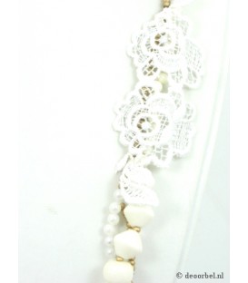 Wit met goudkleurige 3 strengs halsketting met kanten bloem